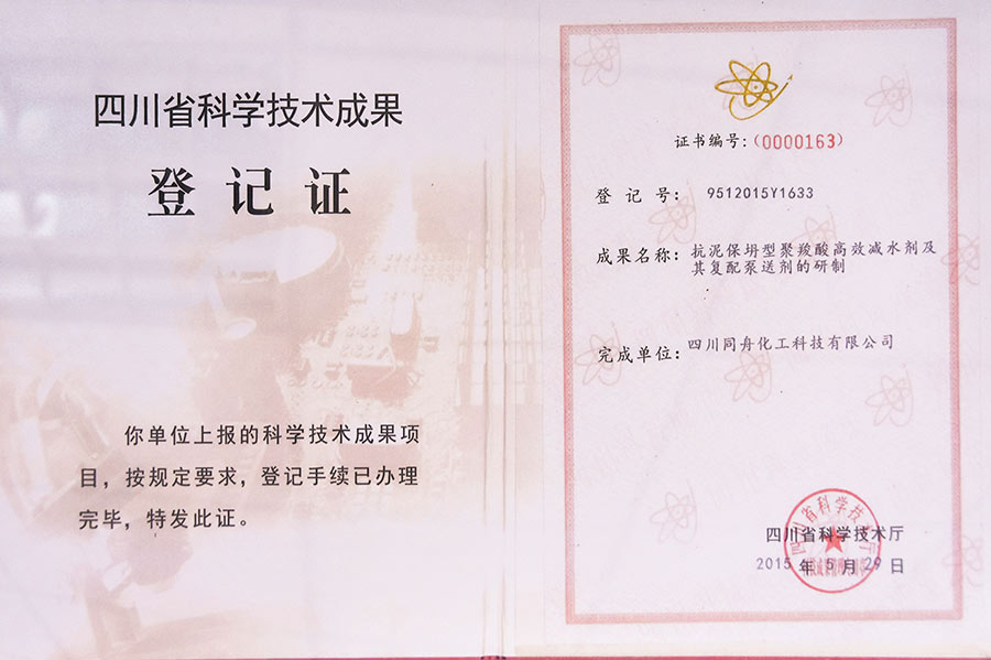 四川省科技成果登記證